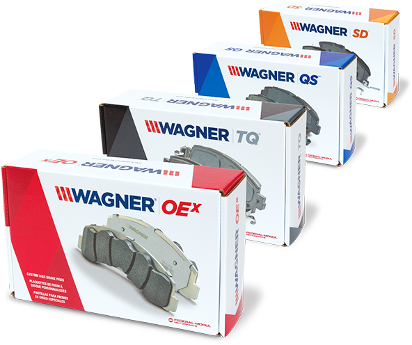vista frontal de la familia de productos de la línea de pastillas de freno Wagner